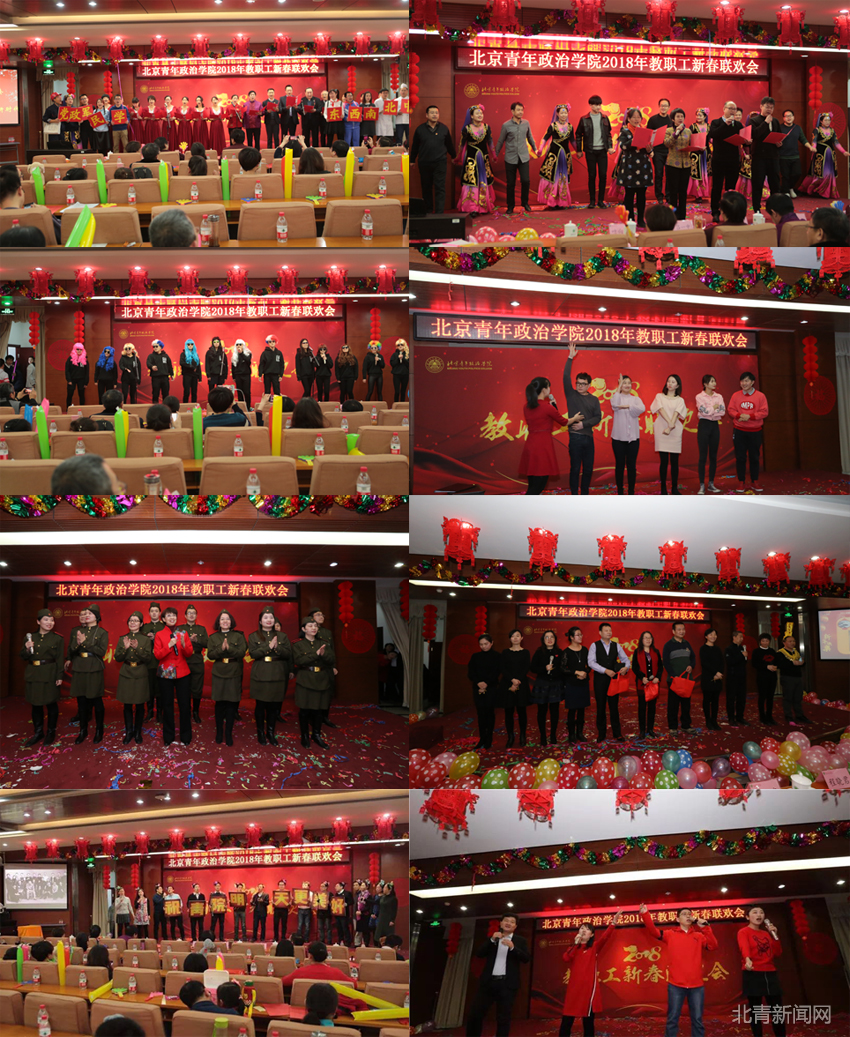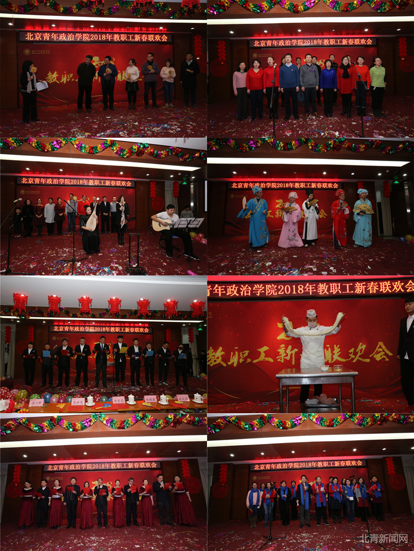 在接下来的节目中,管理系的诗歌朗诵《阁楼上的月光》诙谐中充满了正能量;英语系的合唱《雪绒花》优美动听;社科部自编的《都说我像三句半》,以轻松幽默的方式回顾了过去一年国家与学院的欣欣向荣,也道出了思政工作的酸甜苦辣;社工系的《那些花儿》,既有中国古典乐器的表演,也有流行的弹唱,充分展现了社工新老师多样的才华;总务处老师们集体表演《技能展示》既给大家展示了美食的制作,也道出了总务工作的艰辛,引起了现场热烈的掌声;科研直属党支部的合唱《年轻的朋友来相会》唱出了老师们的年轻心态和对未来的美好期许;联欢会在文法系带来的《歌唱祖国》的歌声中圆满落下帷幕。