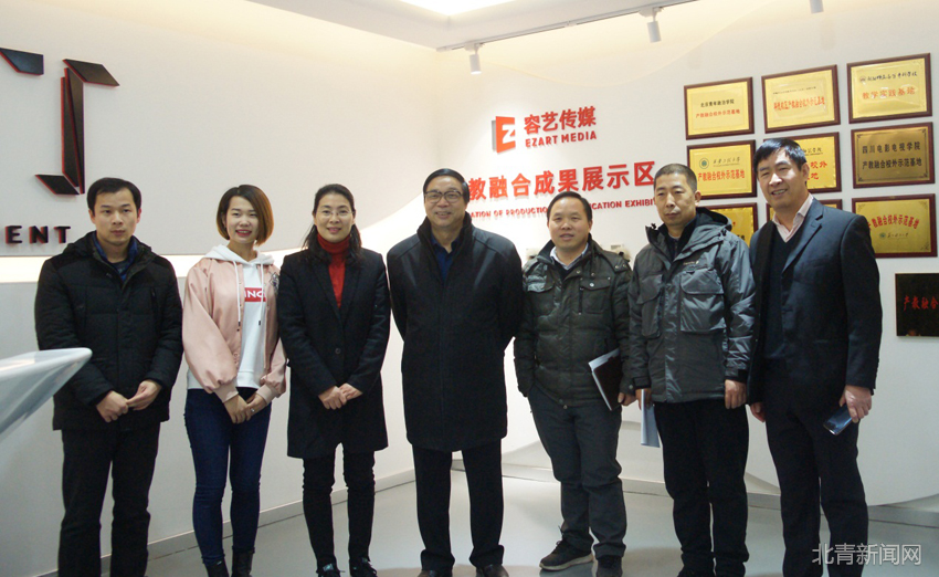 陪同吕一中副院长一同调研的有教务处副处长肖毅、实训科长王利。一行人一同考察了容艺传媒的实训环境。