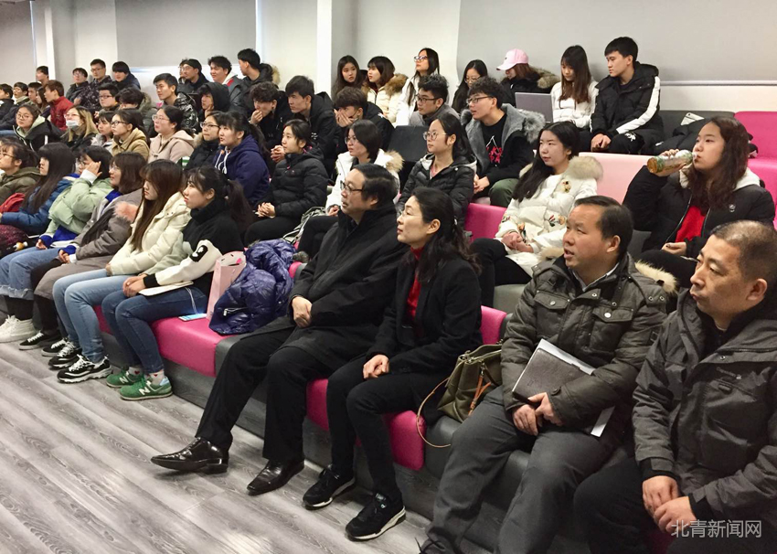 2018年1月15日上午,副院长吕一中深入传播系校企合作小学期现场——容艺传媒,旁听实训课程,考察实训环境,与容艺传媒创始人、董事长、著名主持人李霞就产教融合进行深入交流。