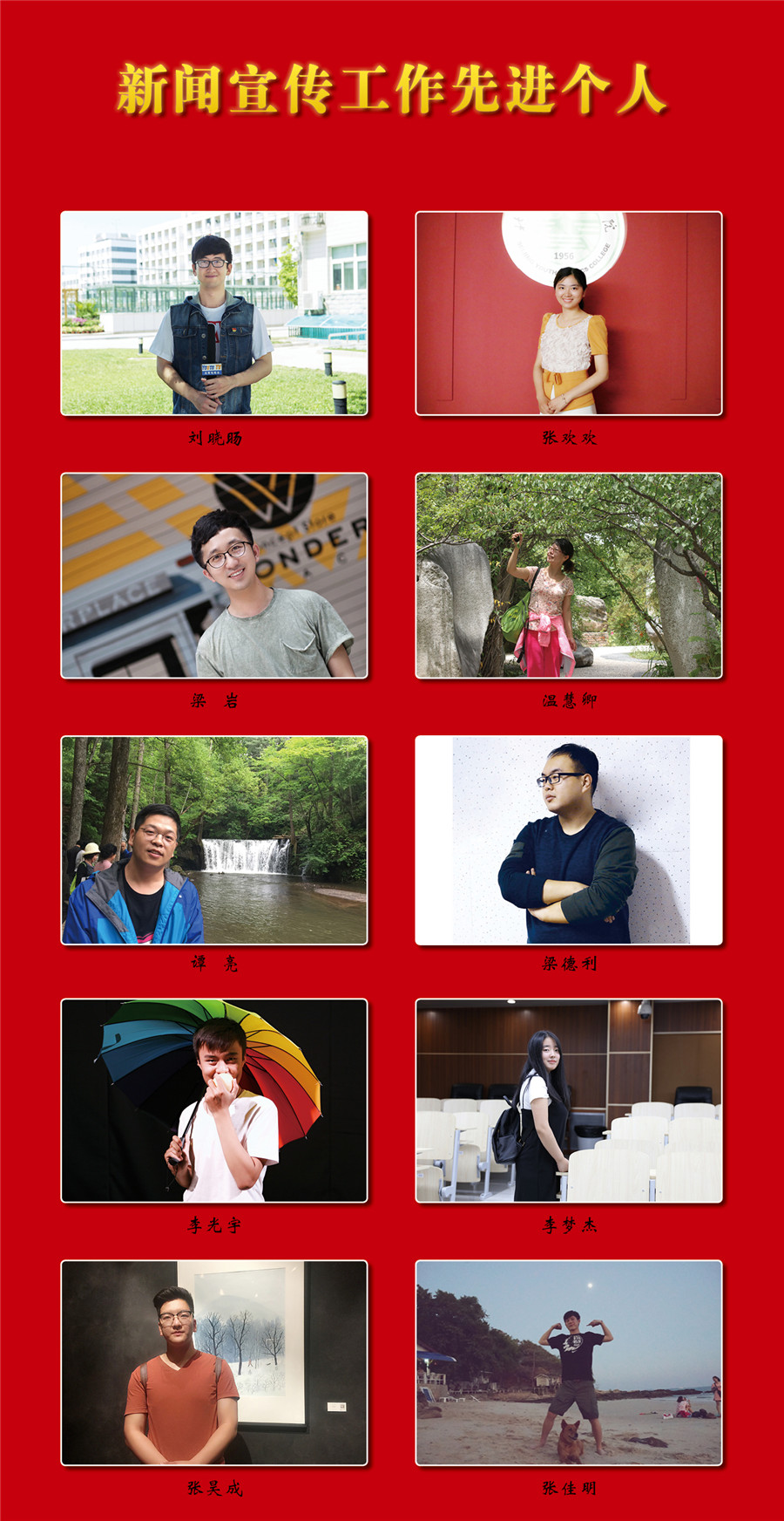 2016届毕业生的故事讲到这里便要与大家说再见了。文秘与法律系王曼岩、张子斗,计算机系侯瑞,管理系王燃、郭静文、刘子豪,青少年教育与管理系程燕,艺术设计系于蕾,社会